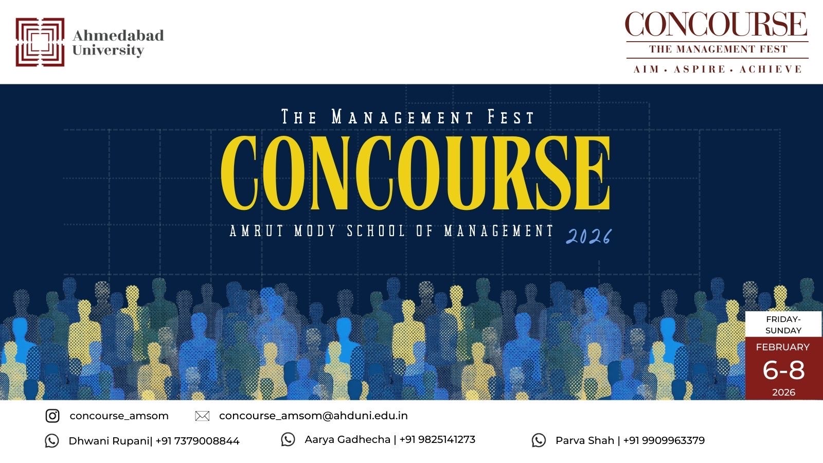 Concourse, the flagship fest of Ahmedabad University’s Amrut Mody School of Management, is a vibrant celebration of learning, leadership, and student excellence. Designed as a platform that blends intellectual rigor with youthful energy, Concourse brings together students from diverse institutions to compete, collaborate, and create impactful ideas. While the fest carries the spirit of creativity and campus culture, its core strength lies in a strong academic foundation that challenges participants to think critically and perform at their highest potential.