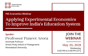 This is an informative session on the content and prospects of studying a masters in Economics at Ahmedabad University. This unique programme is offered to integrate economics with data science. The programme offers a theoretical understanding of both areas and complements it with practical applications that inculcate skills required to advance in contemporary industry. This session will focus on the unique features of the programme which will prepare the students with the skills required to be a modern-day economist. It will also focus on the possible career prospects of the potential students.