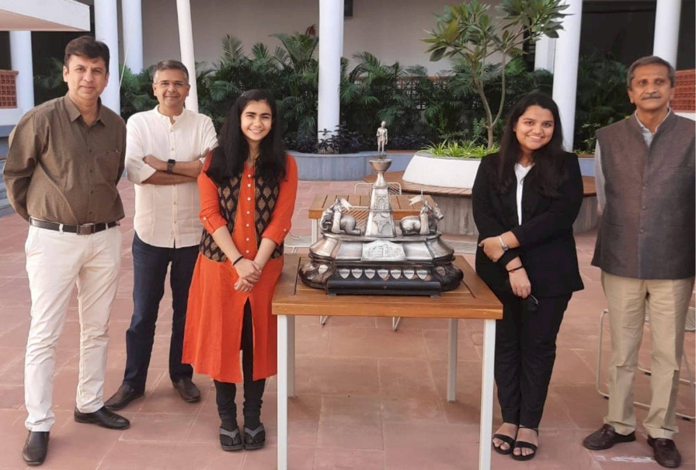 Aditi and Mana received the trophy on January 8, 2022 debating on the topic - India must revisit Gandhian thoughts for the country’s economic bounce back from Covid. Competing against top-notch colleges such as St Xavier's College, Umiya College, Uma College Gandhinagar and home team HL College of Commerce, among others, our students were represented as Team Awaaz.