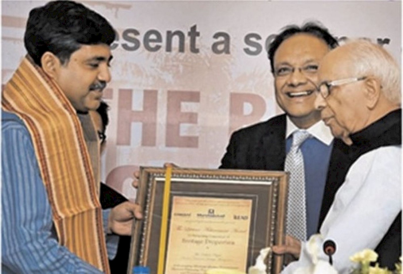 “Debashish Nayak, Director, Centre for Heritage Management, Ahmedabad University receives a Lifetime Achievement Award for “Enterprising Conservation of Heritage Properties” from Governor Keshari Nath Tripathi, West Bengal”.