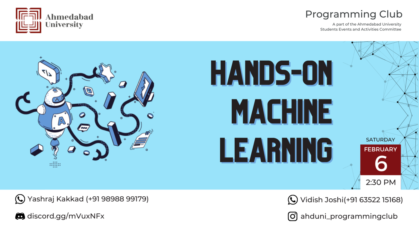 Machine Learning is one skill where many of our students have shown interest in learning, across disciplines. The event aims to tackle the same subject from an applied perspective to give the students a flavour of how Machine Learning problems are solved in the real world.