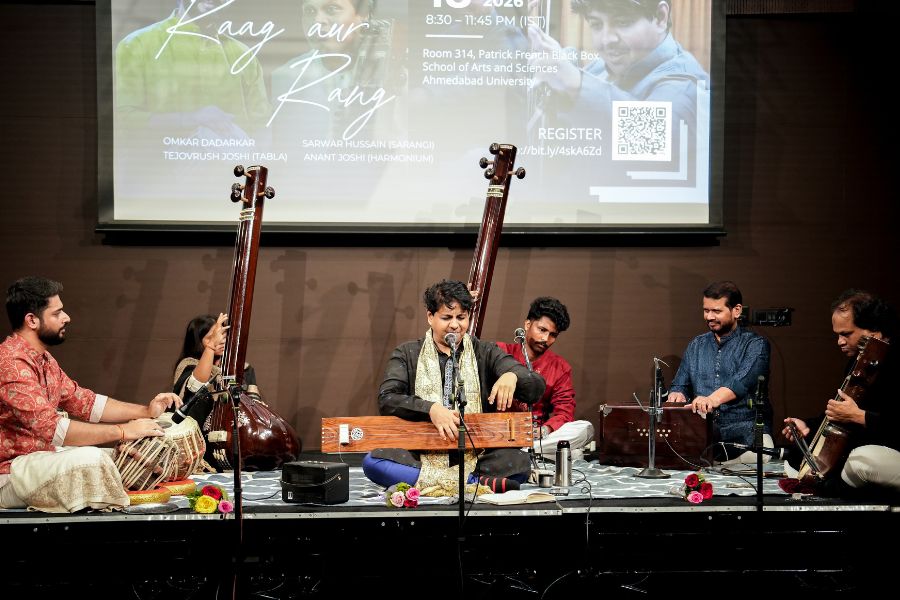 Ahmedabad University, in collaboration with Mihir Thakore, invites you to a Hindustani Music Concert by young master Omkar Dadarkar, supported by a sparkling team of accompanists - Tejovrush Joshi (tabla), Sarwar Hussain (sarangi) and Anant Joshi (harmonium).