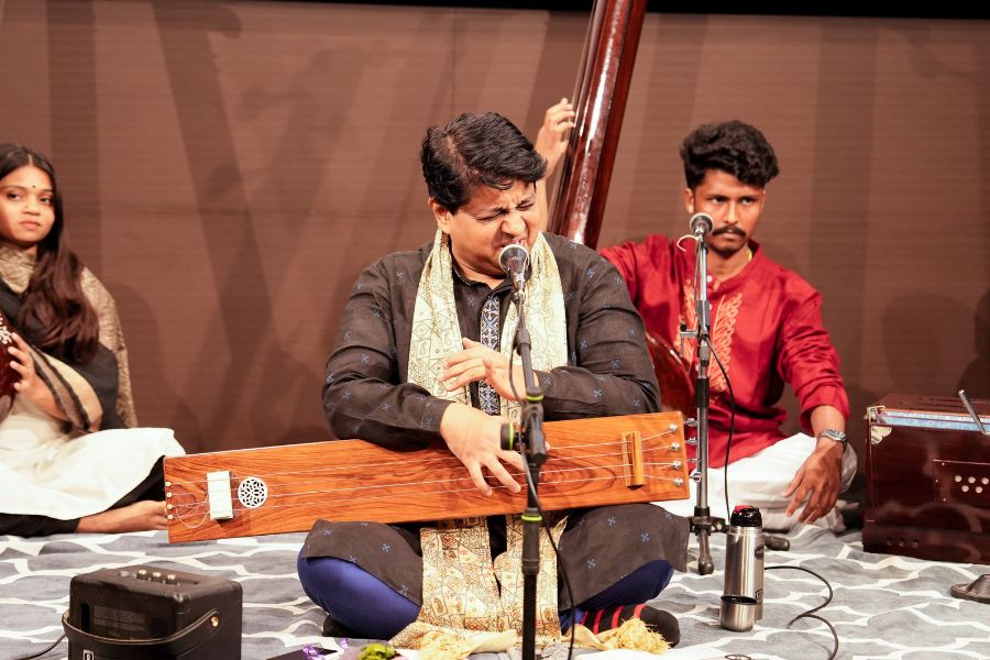 Omkar Dadarkar comes from a family of Marathi Natyasangeet experts. He trained under his aunt Manik Verma initially and later under Ram Deshpande. He further honed his skills with Pt. Yashwantbua Joshi of the Gwalior Gharana tradition and received rigorous instruction from Pt. Ulhas Kashalkar at the I.T.C. Sangeet Research Academy. Now a faculty member there, Dadarkar has gained recognition as a concert performer in India and abroad, earning the prestigious Ustad Bismillah Khan Yuva Puraskar in 2010.
