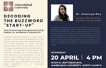 Venue: Room No 100, University Centre, Ahmedabad University, Central Campus