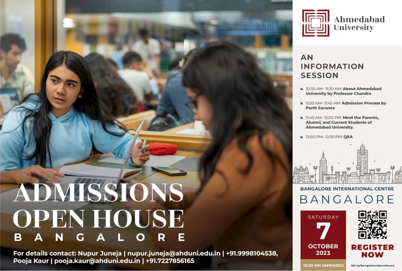 Ahmedabad University invites you, your students and parents for our Open House in Bangalore on Saturday, October 7, 2023.