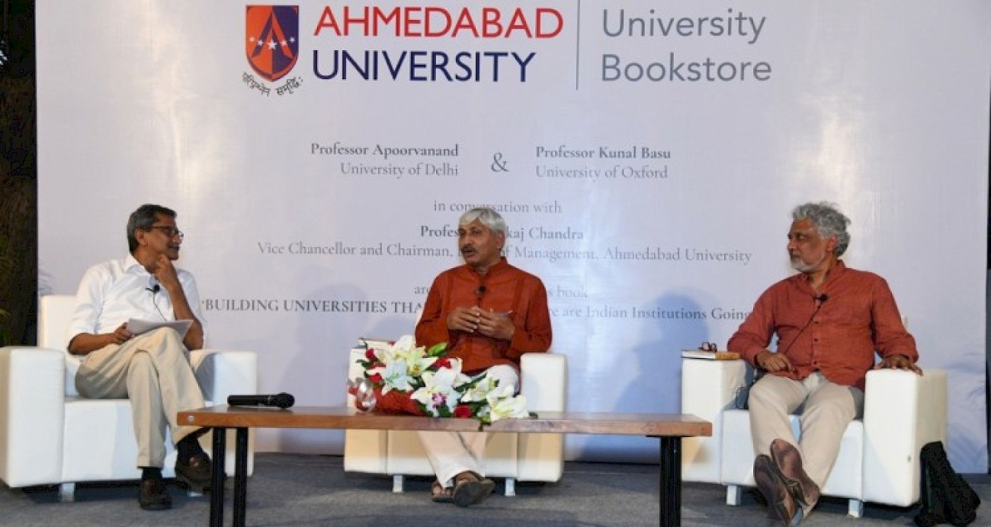 The launch of the Ahmedabad University Bookstore was preceded by a panel discussion, led by some of the leading academic thinkers: Professors Pankaj Chandra (Vice Chancellor, Ahmedabad University), Kunal Basu (University of Oxford) and Apoorvanand (University of Delhi). The panel discussed the need for university education as a systemic process in the context of the city in which it exists, and how its culture is nuanced by a discourse between the city and university. The Bookstore, “is an attempt to provide a reflective stage for interdisciplinary thinking and its expressions to shape the concerns of society and its culture” said Professor Chandra. Speaking on the subject Professor Chandra also said, “The fact that there are no university bookstores in India which house an eclectic assortment of deeply-researched books is what triggered this idea among the leadership at Ahmedabad University. Moreover, the initiative is in line with our vision of developing Ahmedabad University as a comprehensive university driven primarily by research that focuses on real con