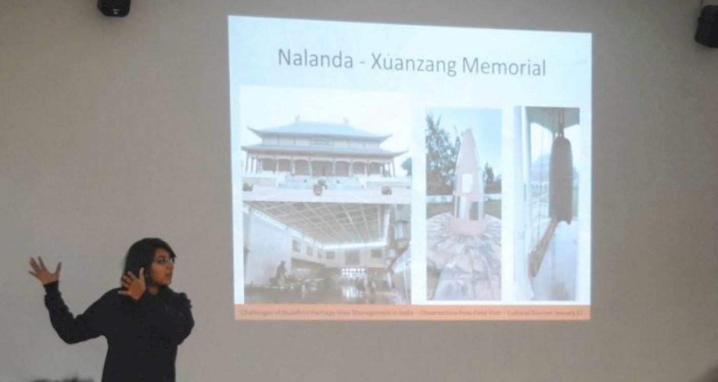 A symposium on 'Challenges of Buddhist Heritage Sites Management in India' was held at Center for Heritage Management. The symposium featured presentations by final year students of the Masters in Management Studies (Heritage Management) programme, who recently pursued fieldwork at Buddhist heritage sites at Bodhgaya and Jethian valley. Following the presentations, Mr Thomas Jones, National Centre for Preservation Technology and Training, USA talked on 'The Evolving Paradigm and Future of Heritage Management in India'.