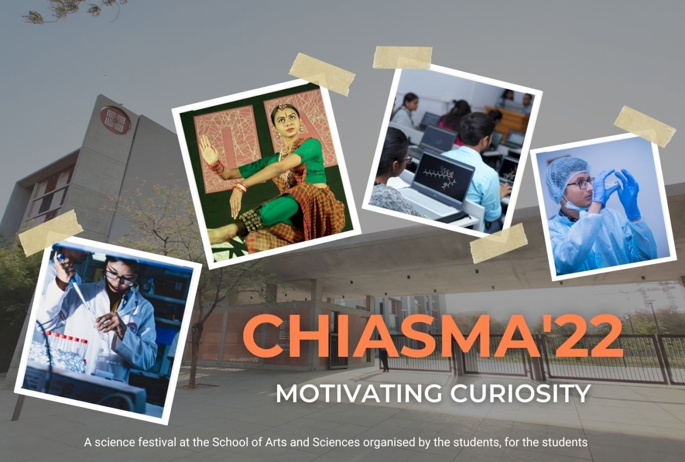 Chiasma, by the School of Arts and Sciences, Ahmedabad University, is a science fest organised by the students and for the students. The fest roots the motto of “Motivating Curiosity” and promotes the idea of research amongst the youth. Literally, as Chiasma links together the two arms of chromosomes, the event is also a cross of science and culture … learning and fun. Scientific workshops during the day catering to the fundamental foundations of the fest are followed by cultural celebrations in the evenings. Epitomizing all that we stand for, Chiasma has been consistently organised and is running successfully since 2017 irrespective of the circumstances as evinced by the fact that this science fest was effectively conducted - albeit virtually - and well-received in March 2021 despite the COVID-19 turbulence. This year Chiasma only gets bigger and better! We plan to expand and include more workshops with a vision to stimulate and further develop research-oriented approaches in the students and provide them with an arena to explore and venture into new perspectives. With that in Chiasma’22, we expect more participation from across the country.