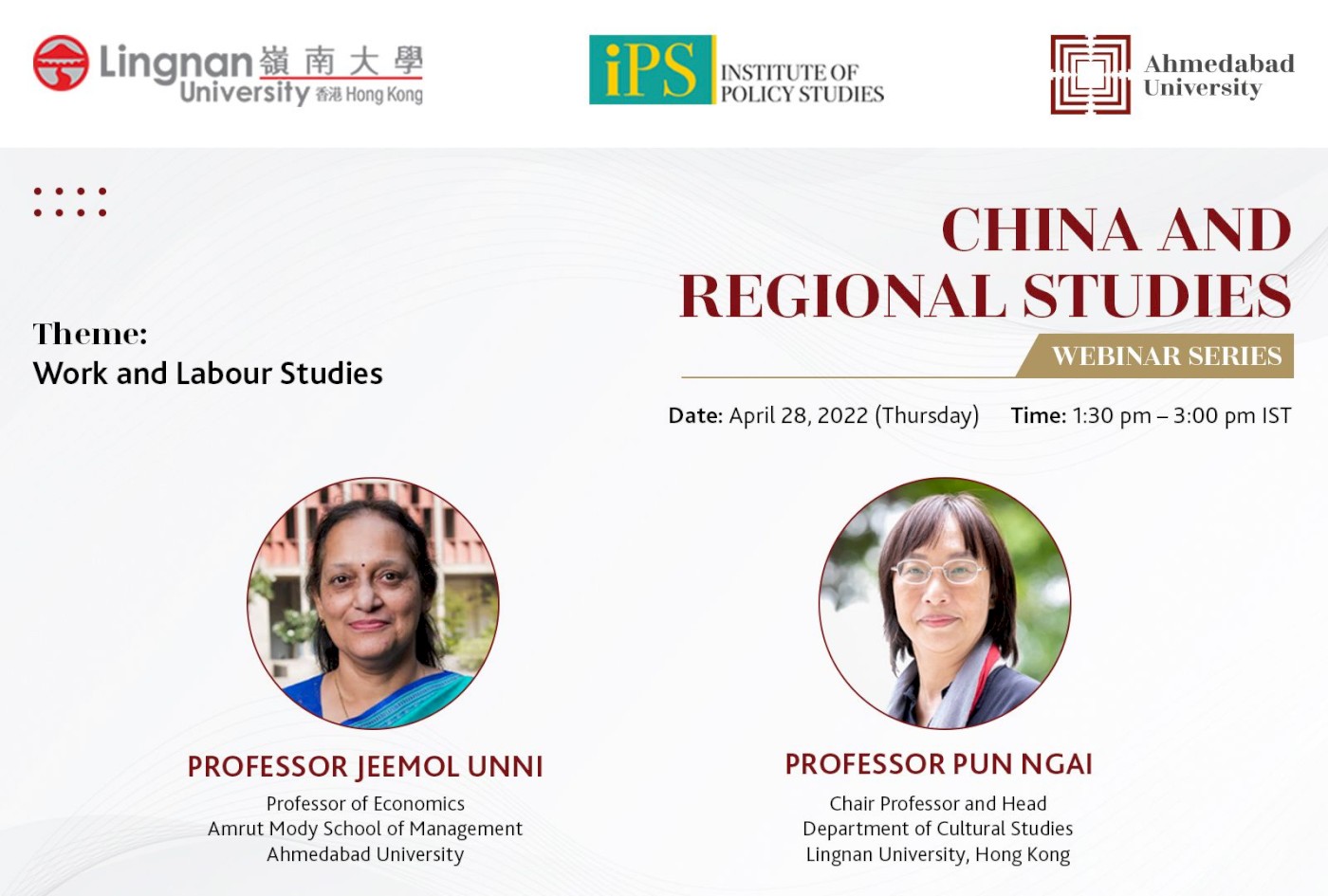 Lingnan University and Ahmedabad University are jointly organising a China and Regional Studies Webinar Series in 2022. The series taps into the topical nature of China and India relations and the experiences of the two countries in key areas that can be fruitfully compared. The webinar series is designed to disseminate and explore the intellectual potential of research fields for future collaboration. The topics include youth aspirations, urban development, cultural practice, and the political economy of gender.