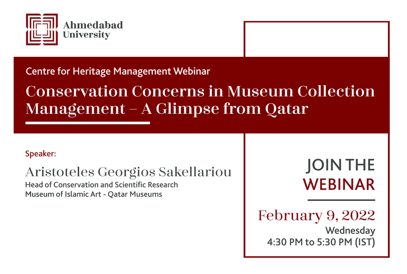 Qatar’s climate, characterised by harsh temperatures makes museum collection management and conservation a hugely challenging task. Navigating through several challenges of climate, speaker Aristoteles Georgios Sakellariou will talk about his experience through the different complications that arise in the conservation and management of museum objects in extreme climates. In this context, he will also talk about the role of Qatar museums authority and the conservation team of the museum of Islamic art in adopting unique conservation and management methods to face this particular type of climate.