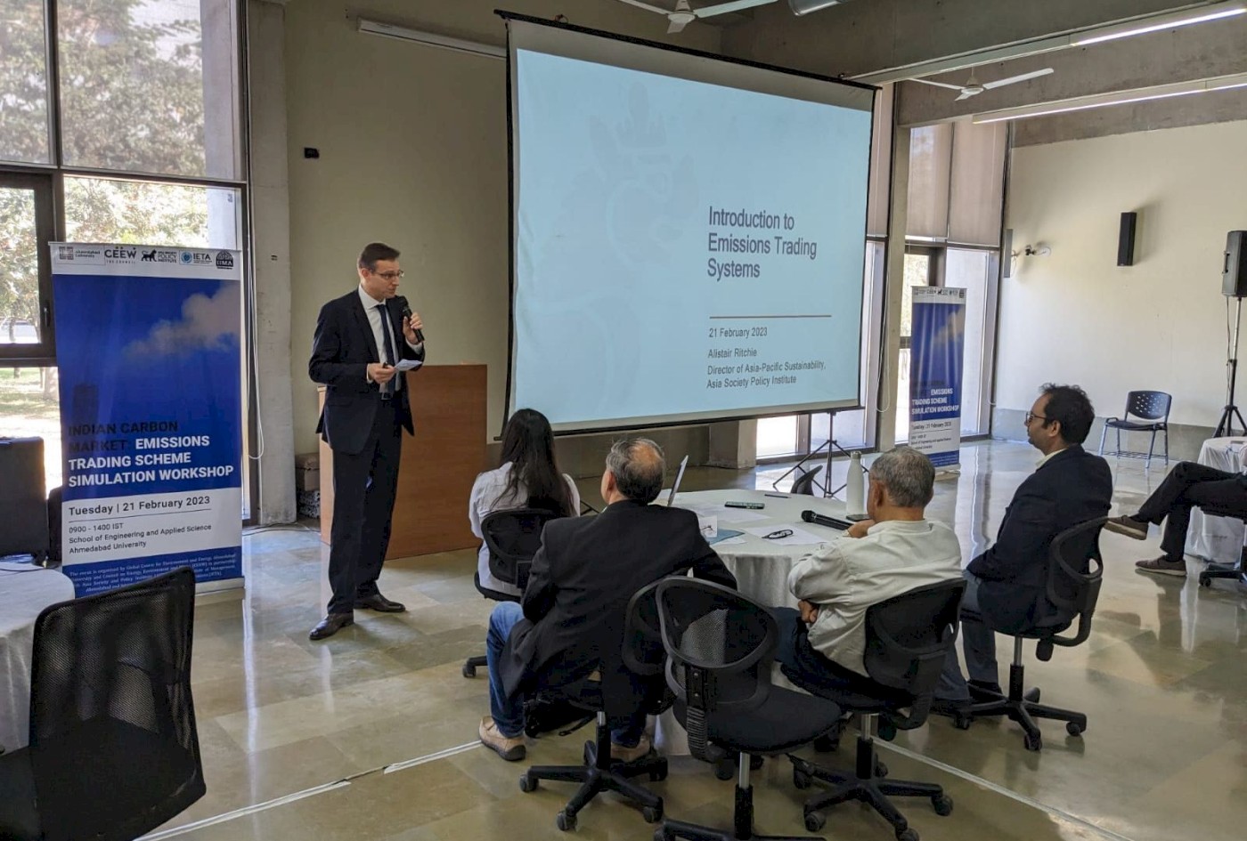 The Global Centre for Environment and Energy, Ahmedabad University, and the Council on Energy, Environment and Water (CEEW) in partnership with the Asia Society and Policy Institute (ASPI), Indian Institute of Management Ahmedabad, and the International Emissions Trading Associations (IETA) hosted a first-of-its-kind ‘Indian Carbon Market: Emission Trading Scheme (ETS) Simulation workshop’ at Ahmedabad University.
