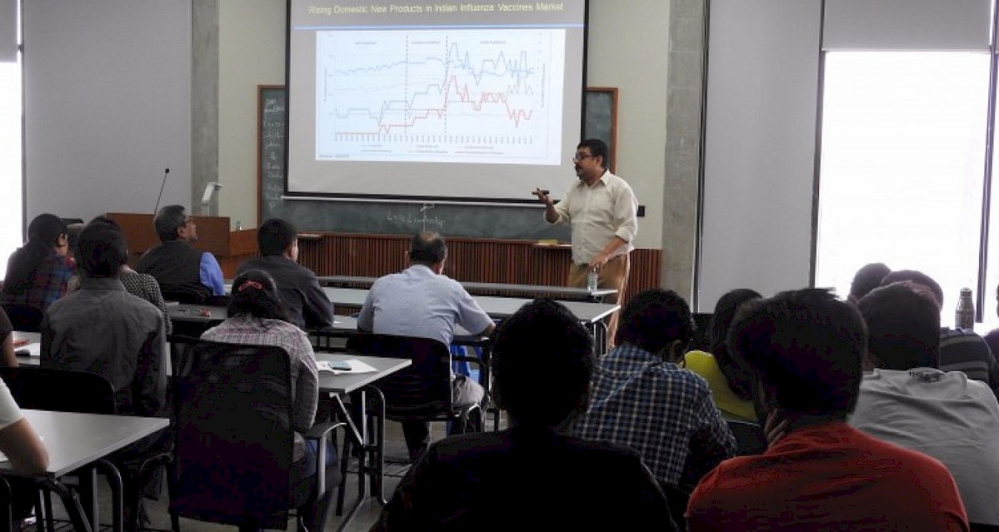 Dr Charterjee talked about his research on the causal relationship between exogenous demand shocks and new product introductions in India’s vaccine markets. Using a novel dataset of detailed purchasing information for vaccines in the country and exploiting the occurrence of the 2009-10 global H1N1 pandemic as their causal demand shock, his team provides evidence of heterogeneous responses to the shock by domestic and multinational vaccine manufacturers in influenza vaccines. Specifically, they find that such a shock results in reversal of market structure for influenza vaccines in India with a decline in sales of multinational vaccine manufacturers and significant gains in market share gains by domestic vaccine manufacturers. They further provide evidence that such a reversal of the market structure is driven by new product introductions by domestic vaccine manufacturers and their distinctive R&D strategies, whose effects persist even after the shock is over. Finally, they examine the efficacy of targeted policy instruments aimed at stimulating innovation in domestic manufacturers. Taken together, their results provide new evidence on how demand shocks create differential incentives for domestic and multinational manufacturers to innovate and contribute to the ongoing debate on the relationship between market size and innovation. In addition, their results offer useful insights into the role of policy on innovation and competition in the context of an emerging economy facing adverse welfare effects from pandemics.