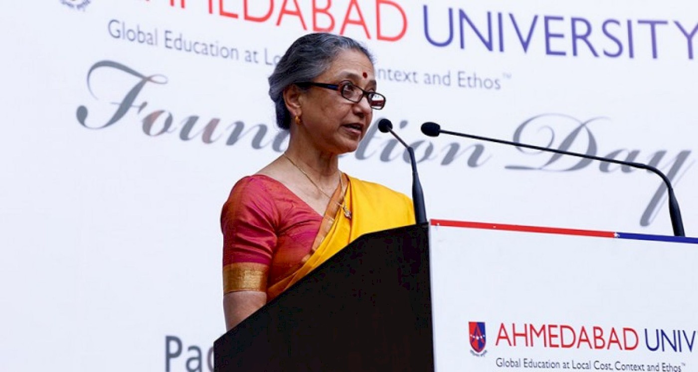 On Ahmedabad University's Foundation Day, Padmashree Leela Samson, acclaimed classical dance virtuoso, attended the event as the Chief Guest. Prior to the main event, Smt. Samson interacted with Ahmedabad University faculty and shared her experience as a Guru. The main event began with an introductory speech by Professor Pankaj Chandra. He invited Smt. Samson to share her experience and wisdom with the Ahmedabad University fraternity. In her speech Smt. Samson stressed upon the beautiful relationship between Guru and Shishya.