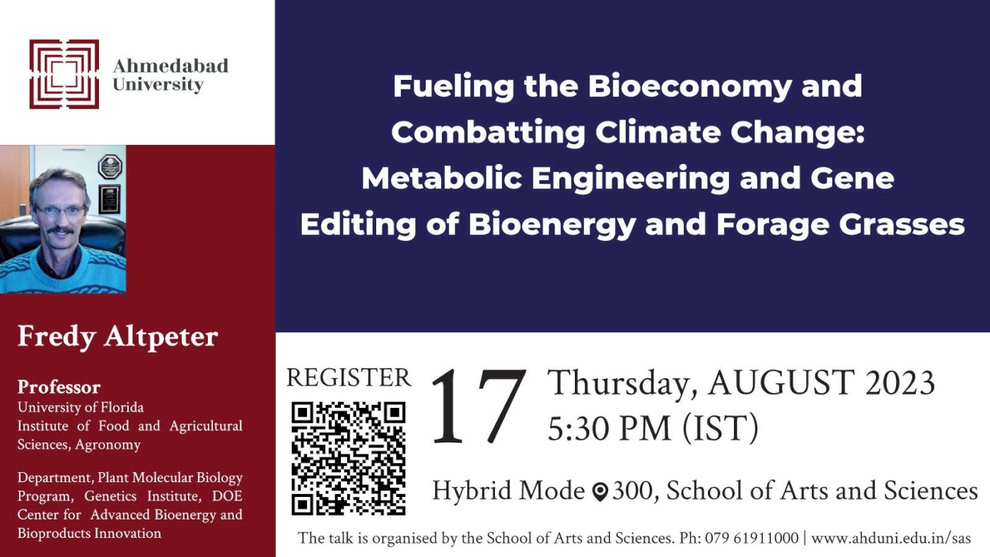 In this talk, Professor Fredy Altpeter of the University of Florida will discuss his research work. Professor Altpeter’s research is focused on the genetic improvement of commercially important grasses, including sugarcane, turf, forage and biomass/bioenergy grasses.