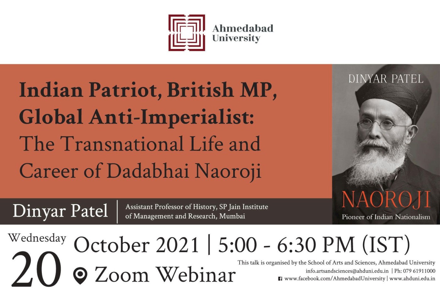 Speaker: Dinyar Patel is Assistant Professor of History at the SP Jain Institute of Management and Research in Mumbai and a Research Affiliate with the Mittal South Asia Institute at Harvard University. He is the author of Naoroji: Pioneer of Indian Nationalism (Harvard University Press, 2020). Patel completed his PhD in history from Harvard and has received Fulbright and National Endowment for the Humanities fellowships.