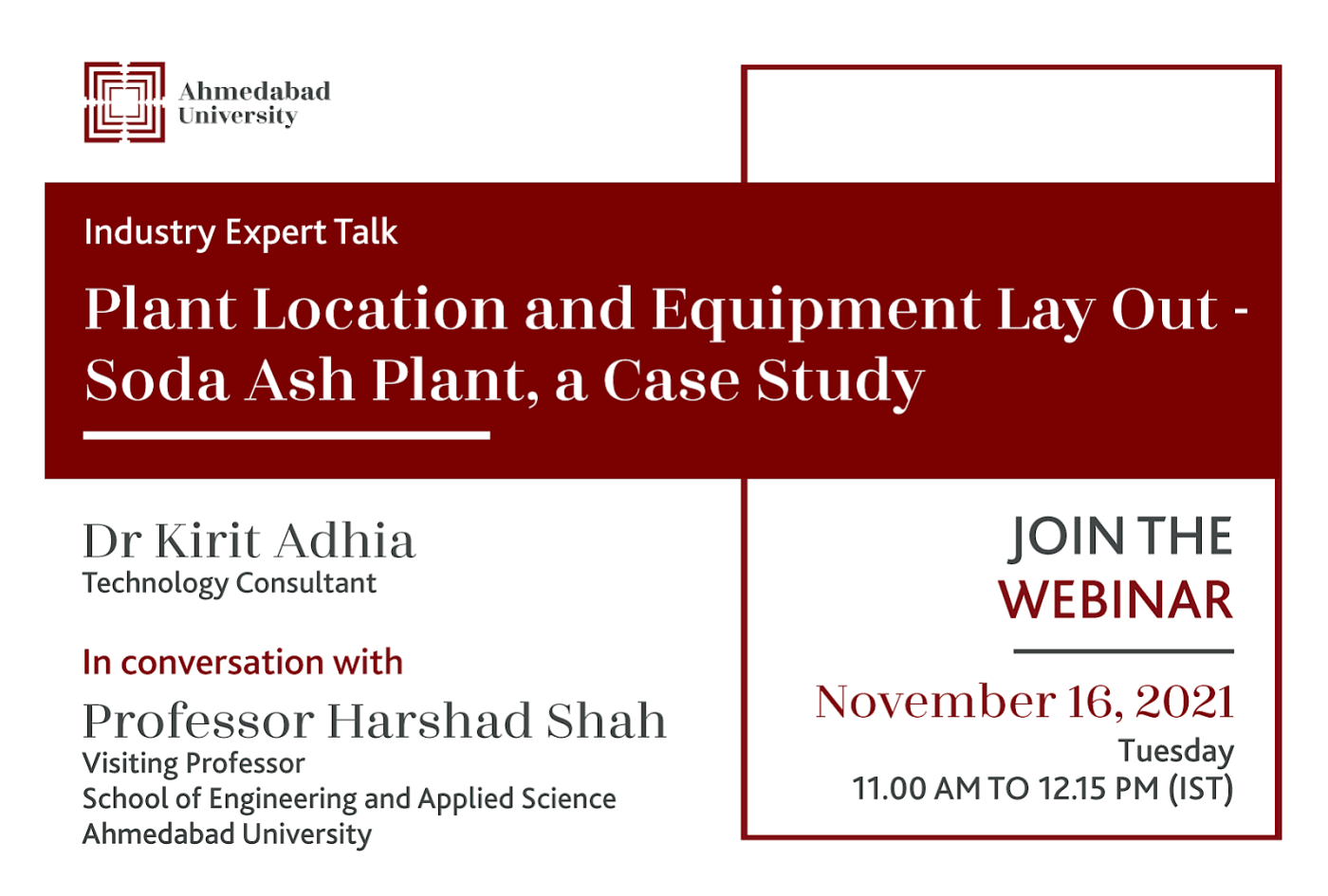It is worth to know why Gujarat is the preferred location for this product – case study and how the equipment layout is decided for the smooth flow of material and effective operation considering chemical safety aspects. With this view, this talk is arranged in the benefit of chemical engineering students