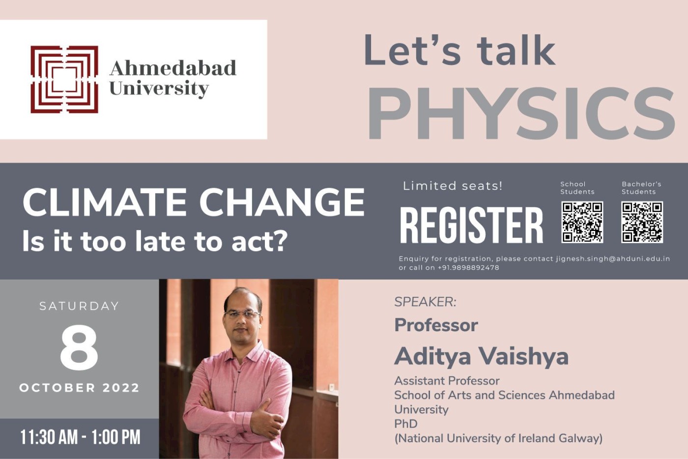 Earth’s climate is the result of complex interactions between the incoming solar radiation and various components of the Earth’s climate system. In this talk, we will see how the climate of our planet was in the past few million years, how the present climate is rapidly changing, and what the future climate will be like. The role of natural elements in influencing the climate will be explored. Further, we will critically examine the role of humans in influencing the climate. Towards the end of the talk, we will discuss if we still can put our acts together to slow down climate change or if it is too late to act.