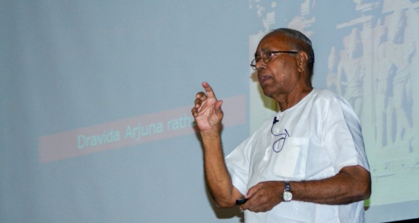 Mahabalipuram, a world heritage site, holds an important place in the art history of India. Its temples and sculptures are not only some of the earliest in this region but also significant in variety and elegance. The entire gamut of temple architecture you can see within walking distance; the cave-temples, the monoliths, structural temples, and open-air bas-reliefs, making it a one-stop destination for the Pallava art. In this talk, Professor Swaminathan explored the characteristics of sculptures, the softness and suppleness of their modelling, and its influence and spread towards the East.
