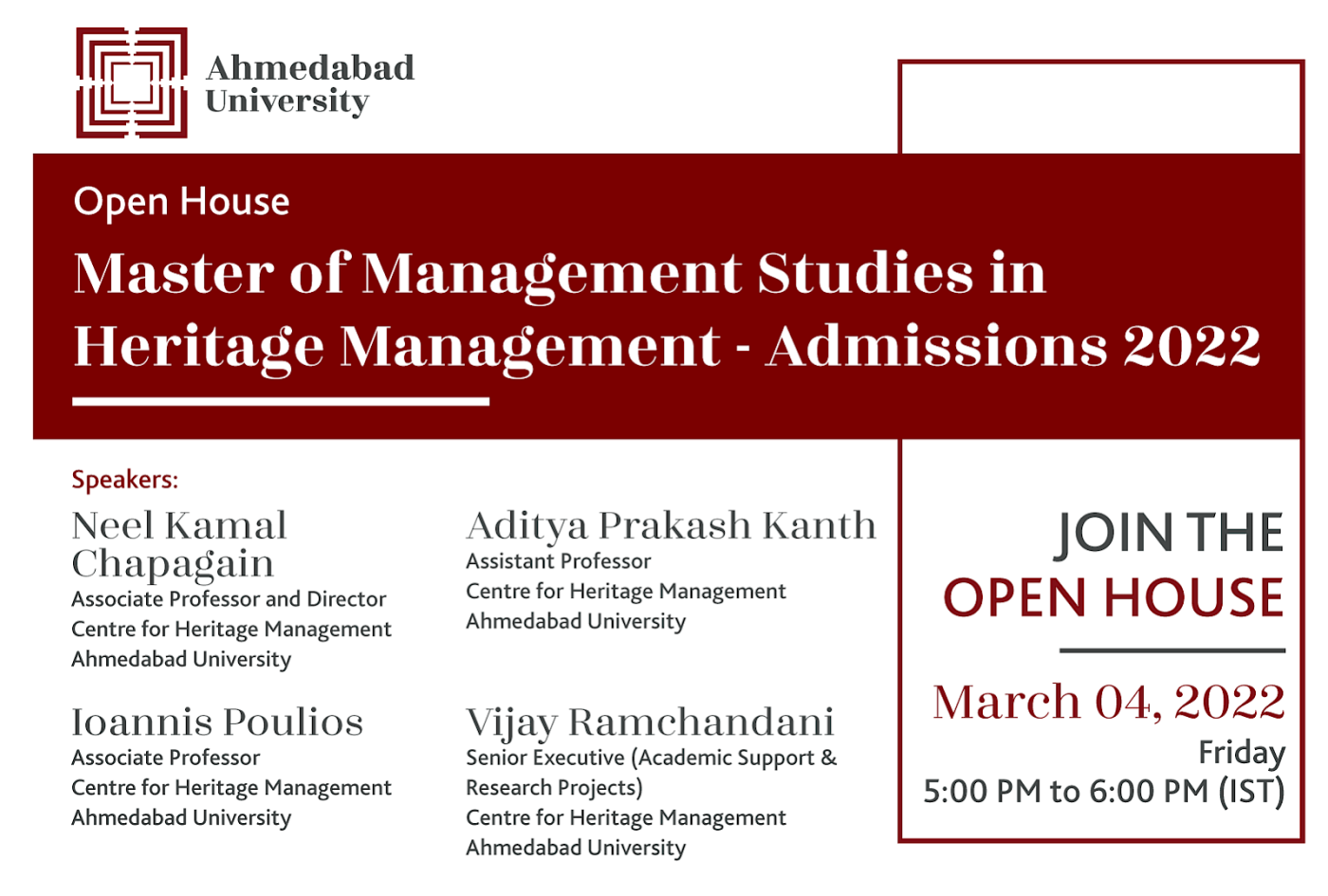 The speakers will highlight the key features of the programme master of management studies in heritage management as well as they will address the queries raised by the prospective applicants.