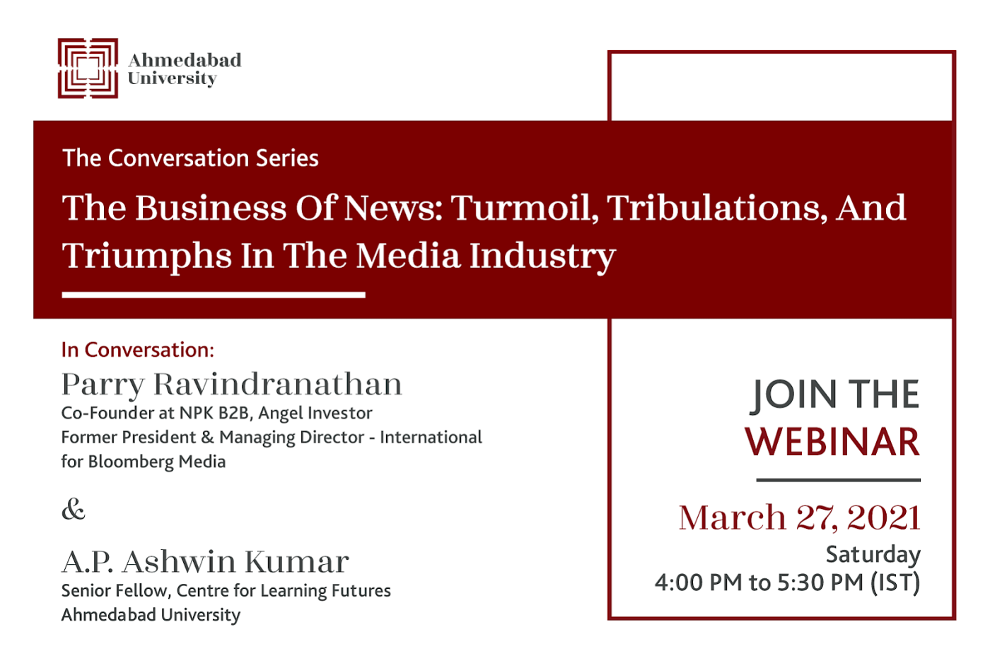 Our speaker, a seasoned leader of media businesses, will address these issues and more. We will discuss if there is still a future for the traditional media business model. In an age of citizen journalism, do we still need professional journalists? If so, how do media businesses and journalists evolve to remain relevant?