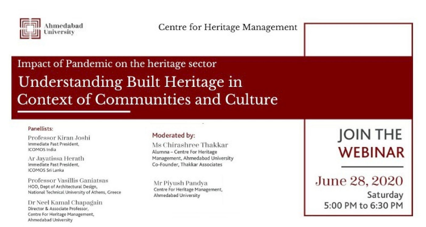 organised by Ahmedabad University, Centre for Heritage Management on 28 June 2020. 17:00 – 18:30 Hours.
