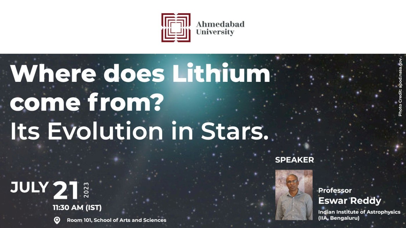 The light element Lithium (Li) with atomic number Z=3 is one of the three elements which originated in the Big Bang, the other two being Hydrogen and Helium. Since then, Li has evolved adding to the original primordial amount. In this talk, Professor Eswar Reddy will describe the cosmic Li problem and its evolution in a particular class of stars. He will describe India's involvement in the next-generation optical and infrared telescope project, the Thirty Meter Telescope (TMT) International Observatory. The TMT with a primary mirror of diameter 30 m poses extraordinary challenges to building and observing celestial objects close to the diffraction limit. One of the key challenges here is that it consists of 492 mirror segments, each of 1.45m, to make up for a 30m diameter and make it behave like a single monolithic mirror with a surface accuracy of a few nanometers. Professor Reddy will discuss this and similar engineering challenges.