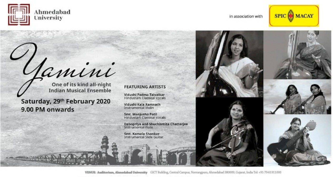 This event will be hosted by Ahmedabad University in collaboration with SPICMACAY on Saturday, 29th February 2020 from 9:00 PM to 5:00 AM (Sunday, 1st March 2020) at the Auditorium, Ahmedabad University, GICT Building, Central Campus, Navrangpura, Ahmedabad.