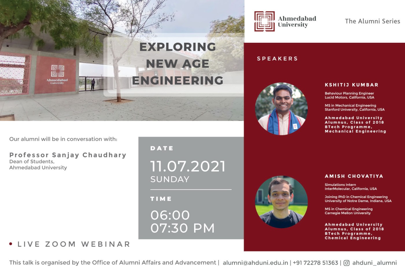 Our speakers, the technology enthusiasts, Kshitij Kumbar and Amish Chovatiya from the first batch of Engineering Programmes at Ahmedabad University are trying to change the scope of the technology that we perceive today.