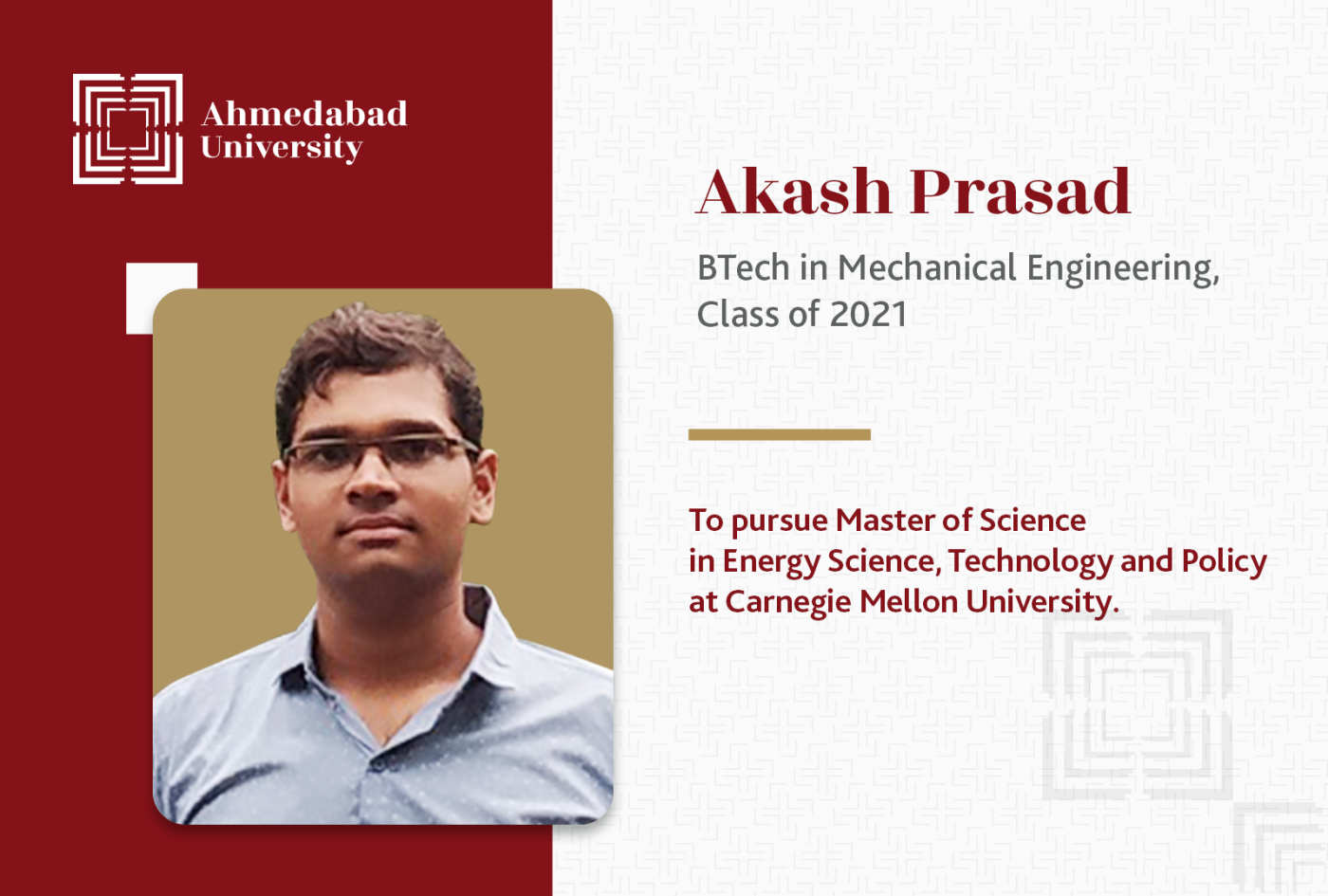 Akash Prasad from Ahmedabad University has done his alma mater proud by bagging a seat at Carnegie Mellon University, USA…one of the New Ivies. Read on to know more on this from Akash -