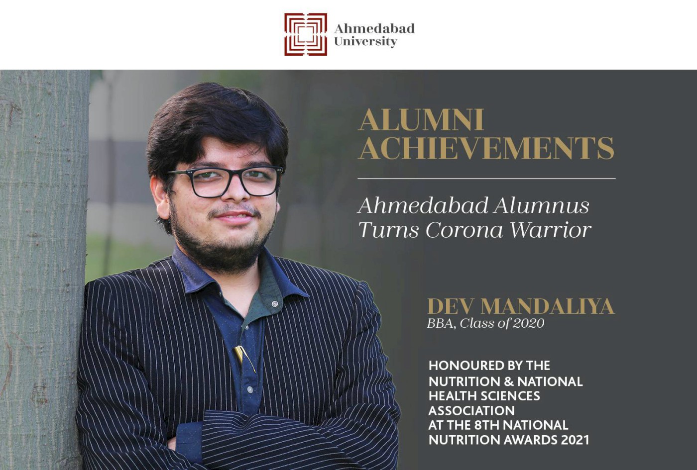 Dev Mandaliya (BBA ‘20) Honoured for Selfless Service as Corona Warrior