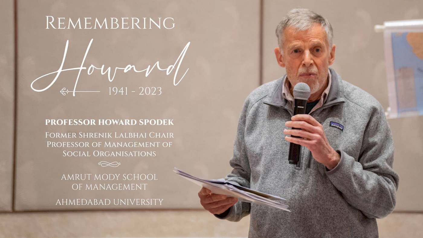 Last December, Professor Spodek joined us as part of the Amrut Mody School of Management-The Wharton School course on Operations (From Gandhi to Globalisation) and provided a phenomenal backdrop to the history of organisations in the city. He was a very friendly, unassuming, and a witty intellectual whose feet remained firm on the ground. We will miss a great friend of the University and a wonderful human being!